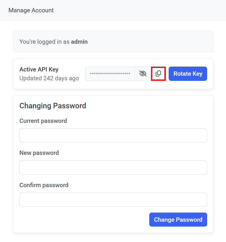 6. Replace the value in the ApiKey field with that copied from the Management Tool.