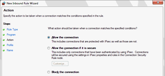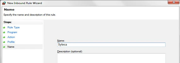9. On the Name page, enter a Name for the rule, and then click Finish.