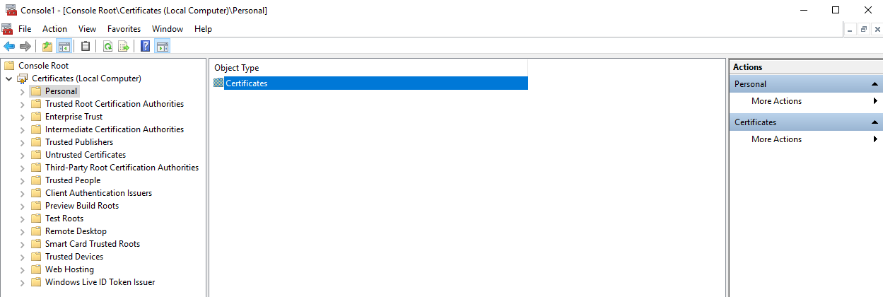 9. Double-click on Certificates in the Object Type pane (in the middle).