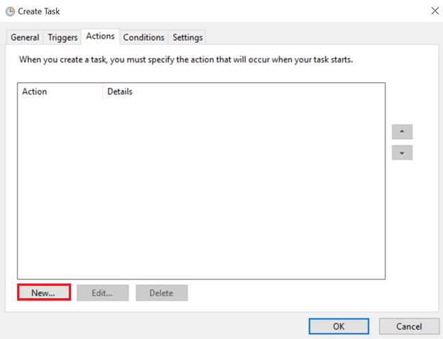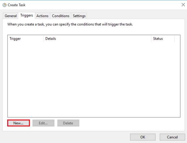 12. Select the Triggers tab in the Create Task window, and then click New.