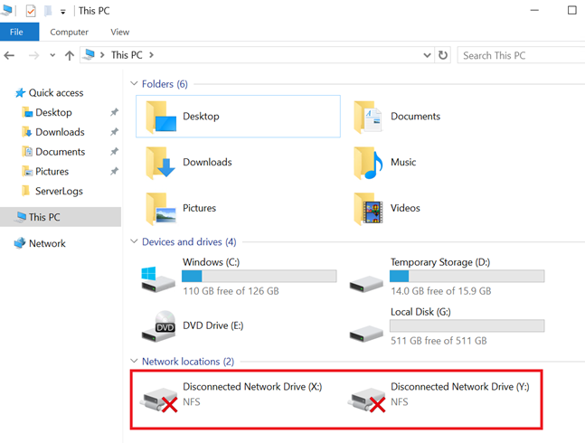 19. In File Explorer, the connected storage should now be displayed, where each connected container has its own local drive letter (as was specified in the script).