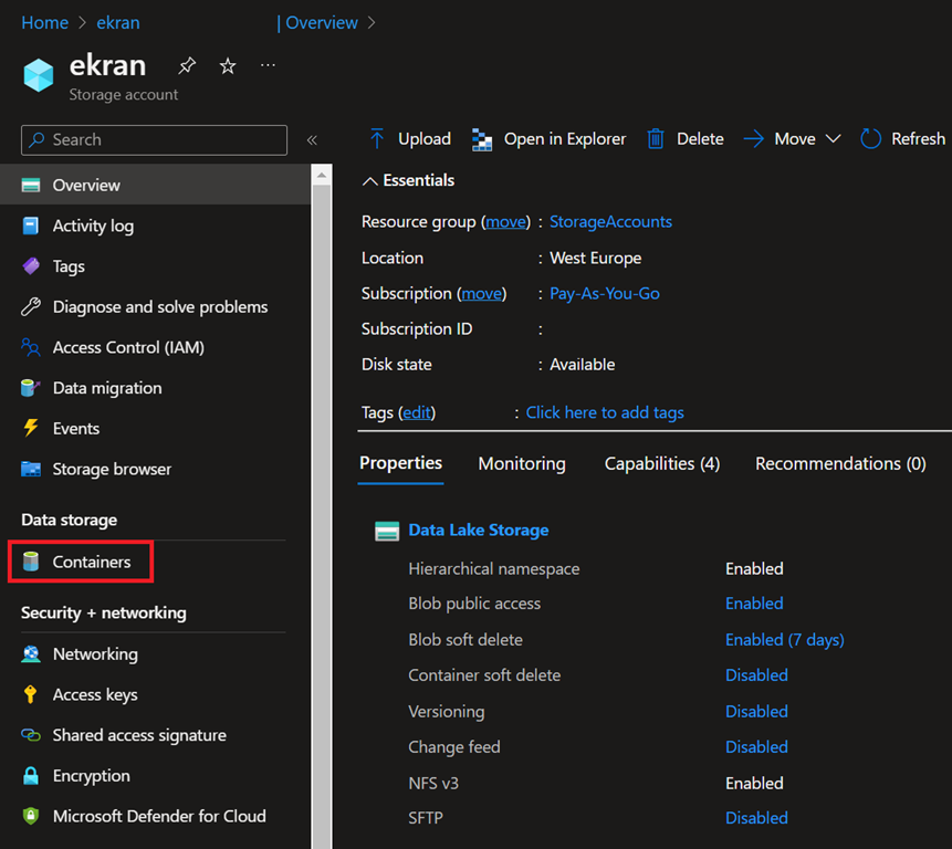 The configuration described in the steps below creates an Azure Blob storage container with anonymous access from a selected virtual network only. For this reason, it is important to use the virtual network that Syteca was deployed on.