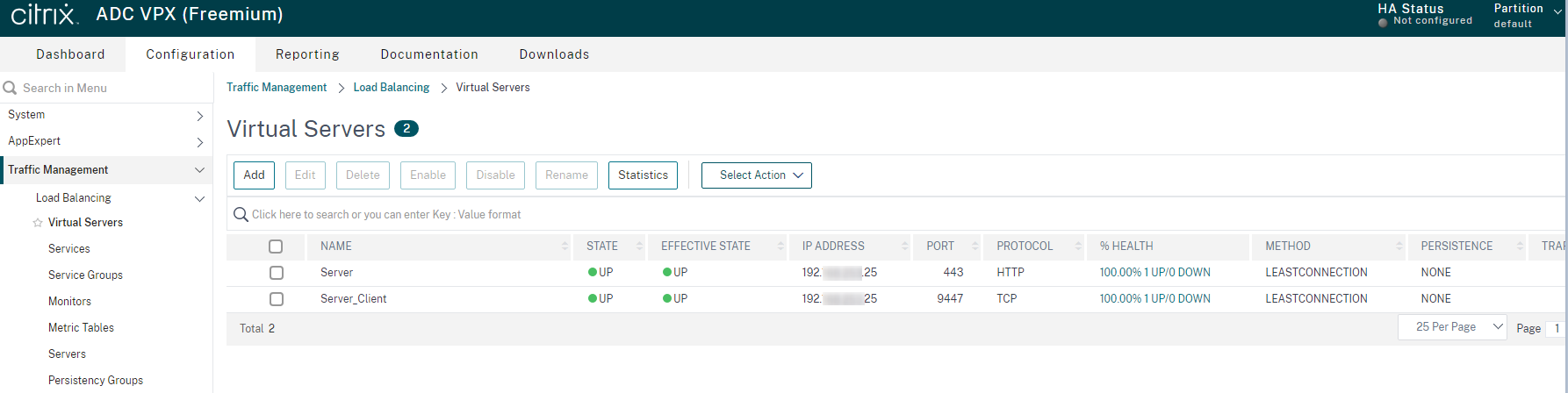 Add the Virtual Servers that will work as the load balancer, by doing the following: