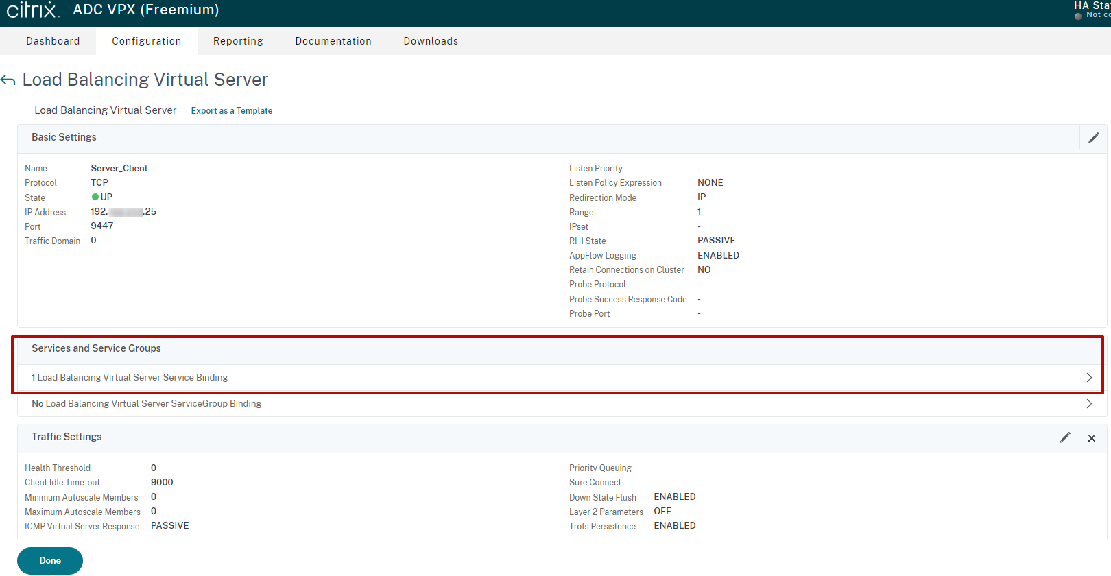7. Click Done on the Configuration page to complete configuring the Virtual Server.