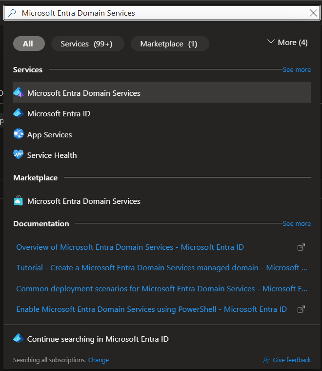 NOTE: The following information may also be useful for reference: Tutorial - Create a Microsoft Entra Domain Services managed domain - Microsoft Entra ID | Microsoft Learn