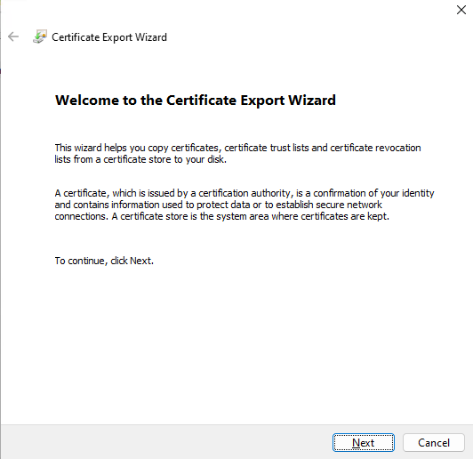 4.2. Export the self-signed certificate created (to be added to Settings > Secure LDAP of the domain created in Section 2 above) by using mmc, as follows: