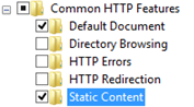 • Internet Information Services > World Wide Web Services > Common HTTP Features > Static Content |