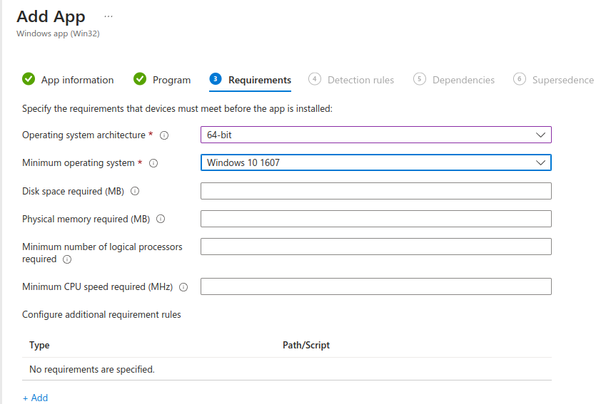 3. Click + Add, and then select Windows app (Win32) in the App type drop-down menu in the Select app type pane (on the right).