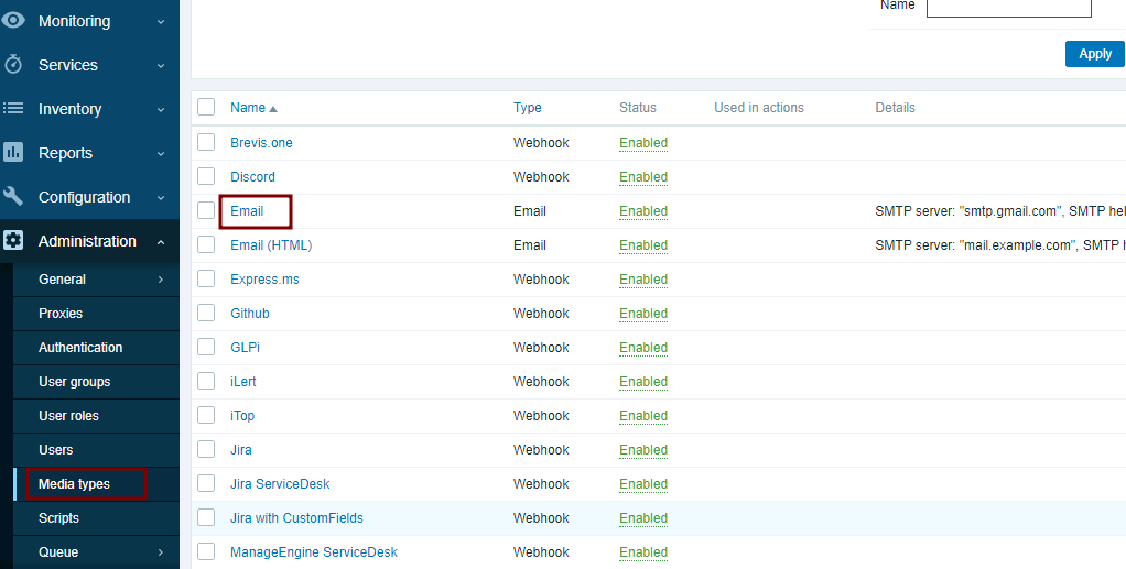 5. Zabbix can send various types of notifications (e.g. SMS, Email, Telegram, Slack, etc.) which next need to be added to all the users and/or user groups defined above.