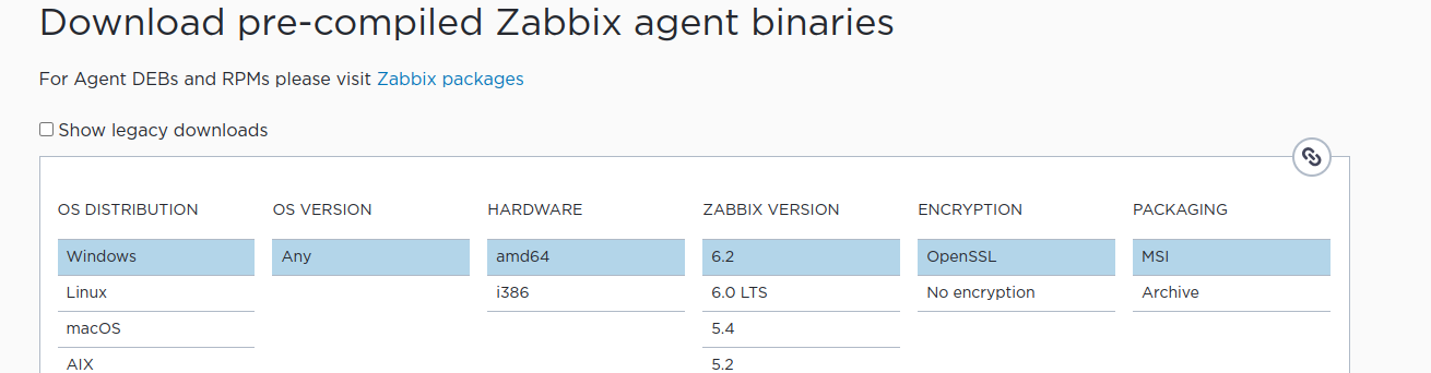 The Zabbix server installation package can be downloaded from: https://www.zabbix.com/download