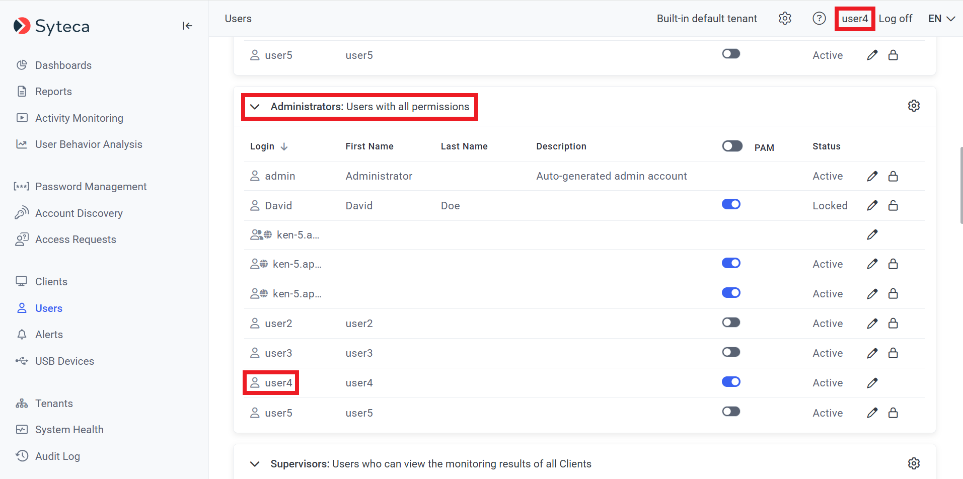 NOTE: "admin" is the default login name (and may have been changed) of the default admin user, that is defined during installation of Syteca Application Server.