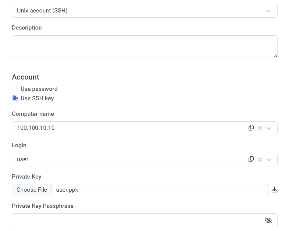 computer_name | string | Yes (for Windows account, Unix account (SSH), and Unix account (Telnet) secrets only). | The Computer name (for Windows, Unix SSH and Unix Telnet accounts only). | ||||