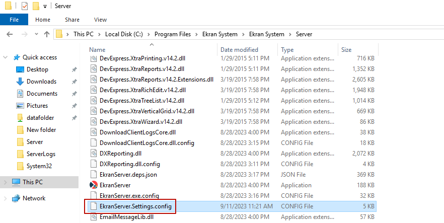 3. Find the EkranServer.Settings.config file, and open it under an administrator account.