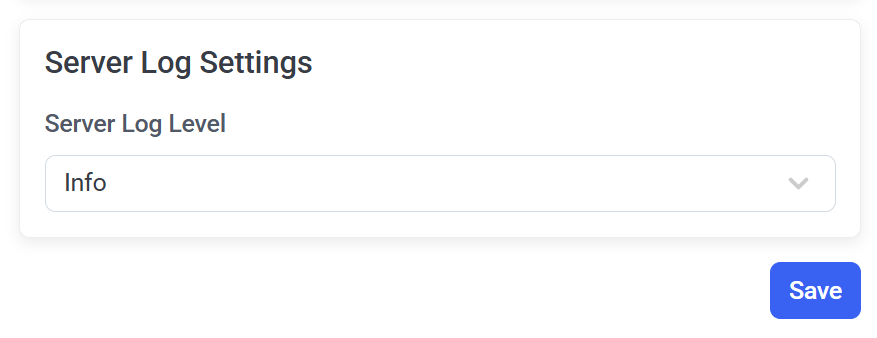 4. Scroll down to the Server Log Settings section (at the bottom), and select the required Server Log Level, and then click Save.