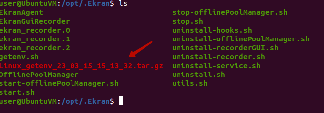 4. The archive containing the logs is then created in the same /opt/.Ekran folder.