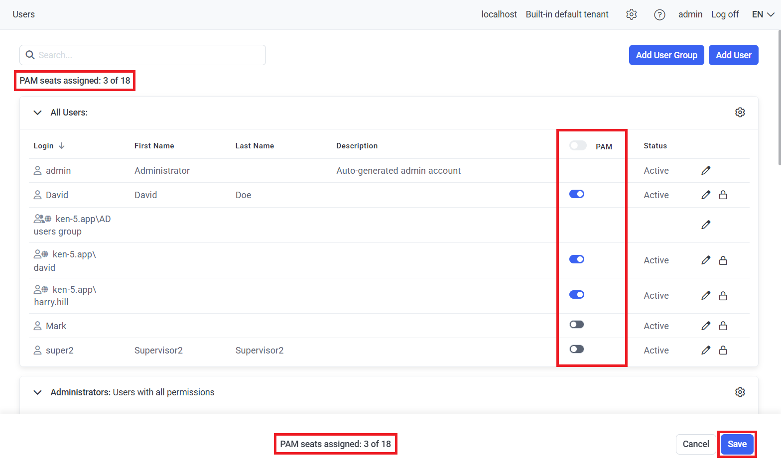• PAM seat licenses must be assigned (to PAM users) manually for the Password Management (PAM) application only.
