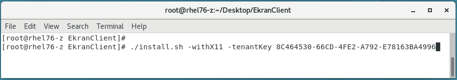 $ sudo ./install.sh -withX11 -tenantKey 90807A10-DF80-45EA-A7DE-A550B55F548A - The Client connects to the Application Server with the name specified in the .ini file via port 9447, with monitoring of the GUI (in X11 sessions). The Client belongs to the tenant with the specified tenant key.