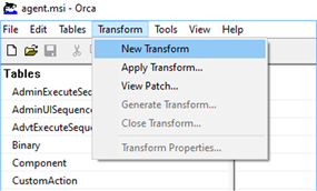 1. Right-click the agent.msi file, and select Edit with Orca in the context menu.