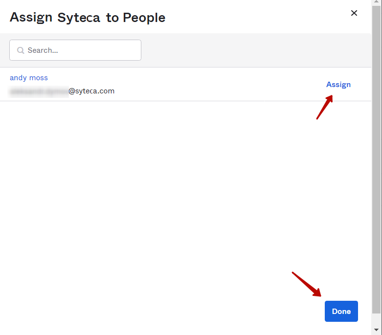 10. Then select the Assign > Assign to People option, and assign a user to this application, and then click Done to apply the changes.