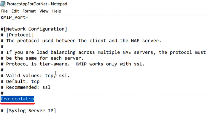 3. If Master Certificate SSL authentication is required, change "Protocol=tcp" to "Protocol=ssl" in the .properties file.