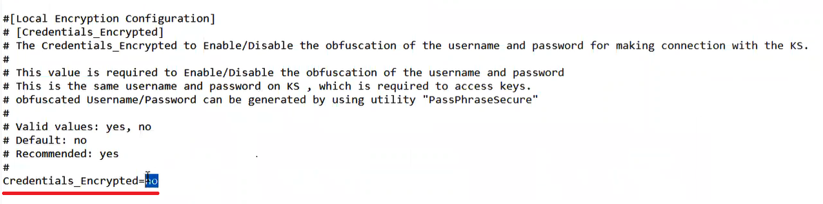 4. If the credentials need to be encrypted, change "Credentials_Encrypted=no" to "Credentials_Encrypted=yes" in the .properties file.