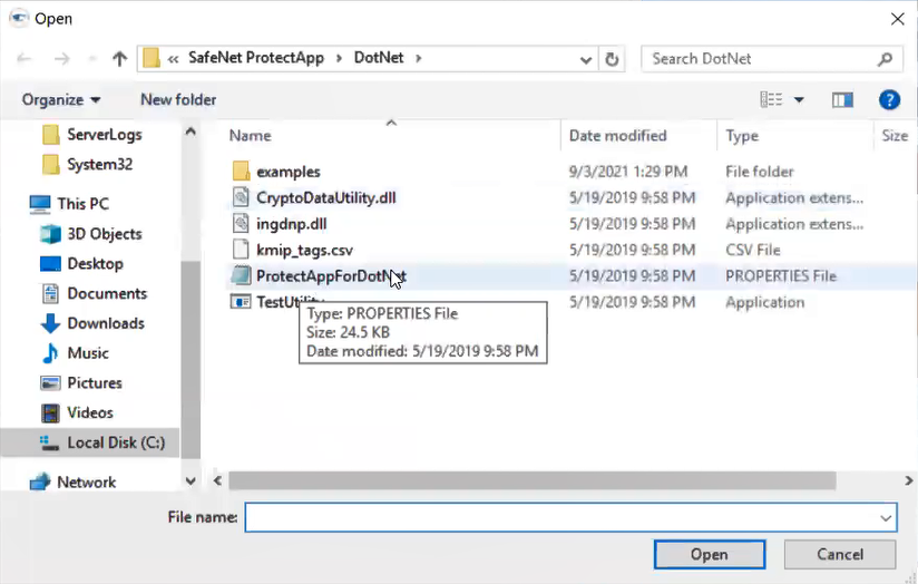 1. In the SafeNet ProtectApp for .NET SDK, locate and open the SafeNet ProtectAppForDotNet.properties file (further referred to as the .properties file).