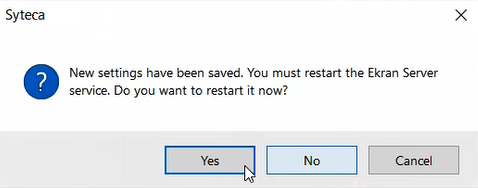 5. Restart Syteca Application Server (i.e. EkranServer service), which can be done by stopping and then starting the Application Server again, by right clicking on the Syteca Server tray icon in the Windows notification area.