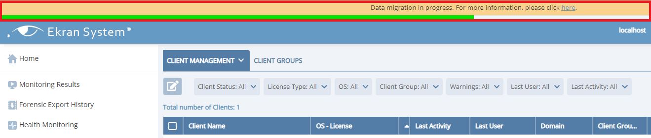 • Database structure – optimized. Please note that after an update of Ekran System, the data migration process begins as soon as the Application Server starts up. Migration takes place in the background and may take some time.