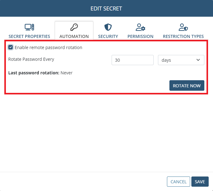 • Password rotation for secrets (PAM):