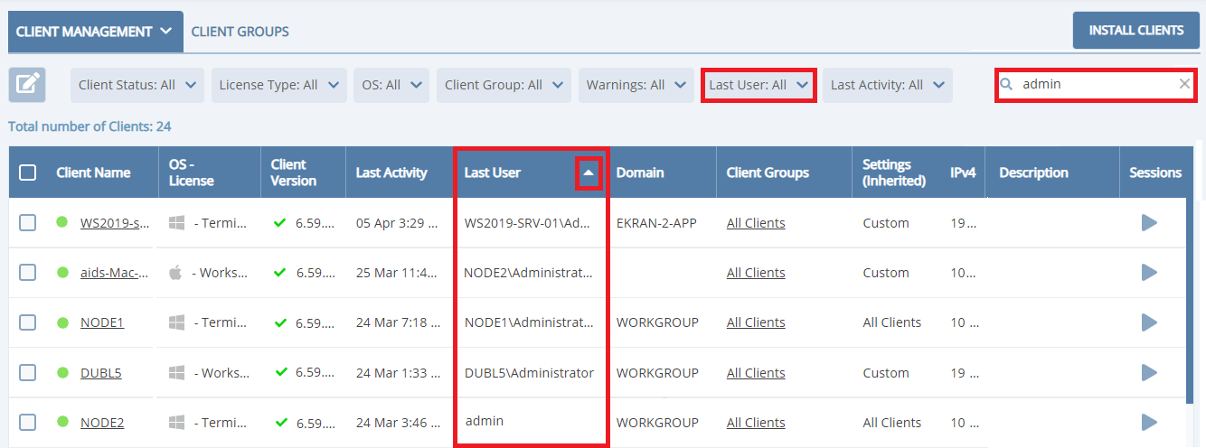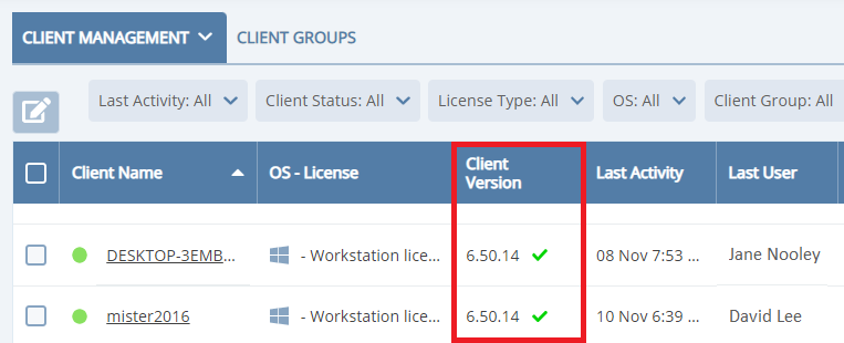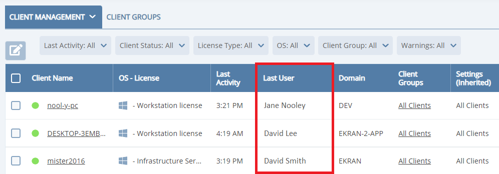 - The last activity time for Clients – is now displayed.