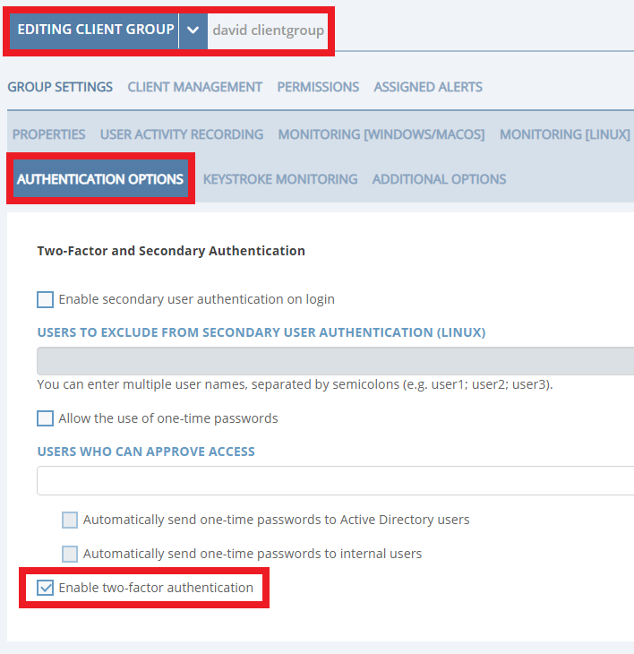 • Secondary user authentication (on Linux Clients) – capability to exclude individual users from checking secondary user authentication added.
