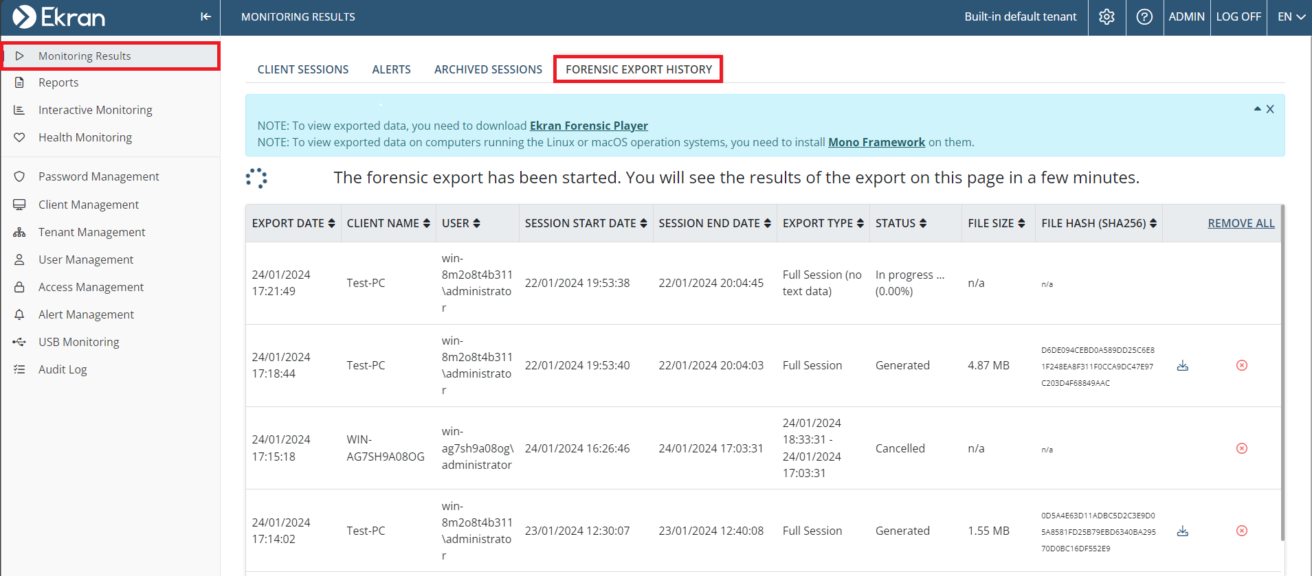 • [Monitoring macOS Clients:] In certain cases, macOS clients were not showing up in the Management Tool after installing them - fixed.