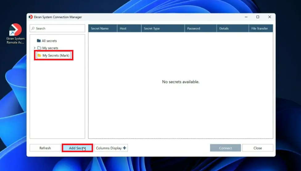 • Secrets in the Ekran System Connection Manager (PAM) were displayed only after clicking the Refresh button (in certain cases) – fixed.