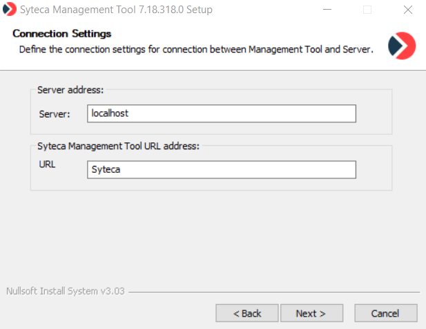 • In the URL field, enter a name for the folder where you want the Management Tool to be located within IIS (the default name is Syteca, and this folder name will form part of the URL used to open the Management Tool).