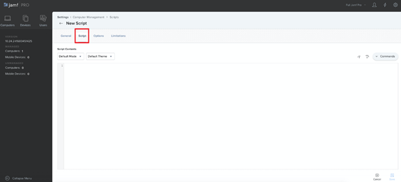 4. Select the Script tab.