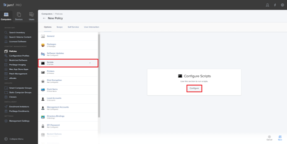 6. In the navigation pane on the left, select Scripts (