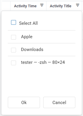 To sort the records in the session, click on the Filter icon in any of the column headers, and then select then required options.