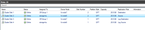 1. In the Failover Cluster Manager, select Storage, and then select Disks.