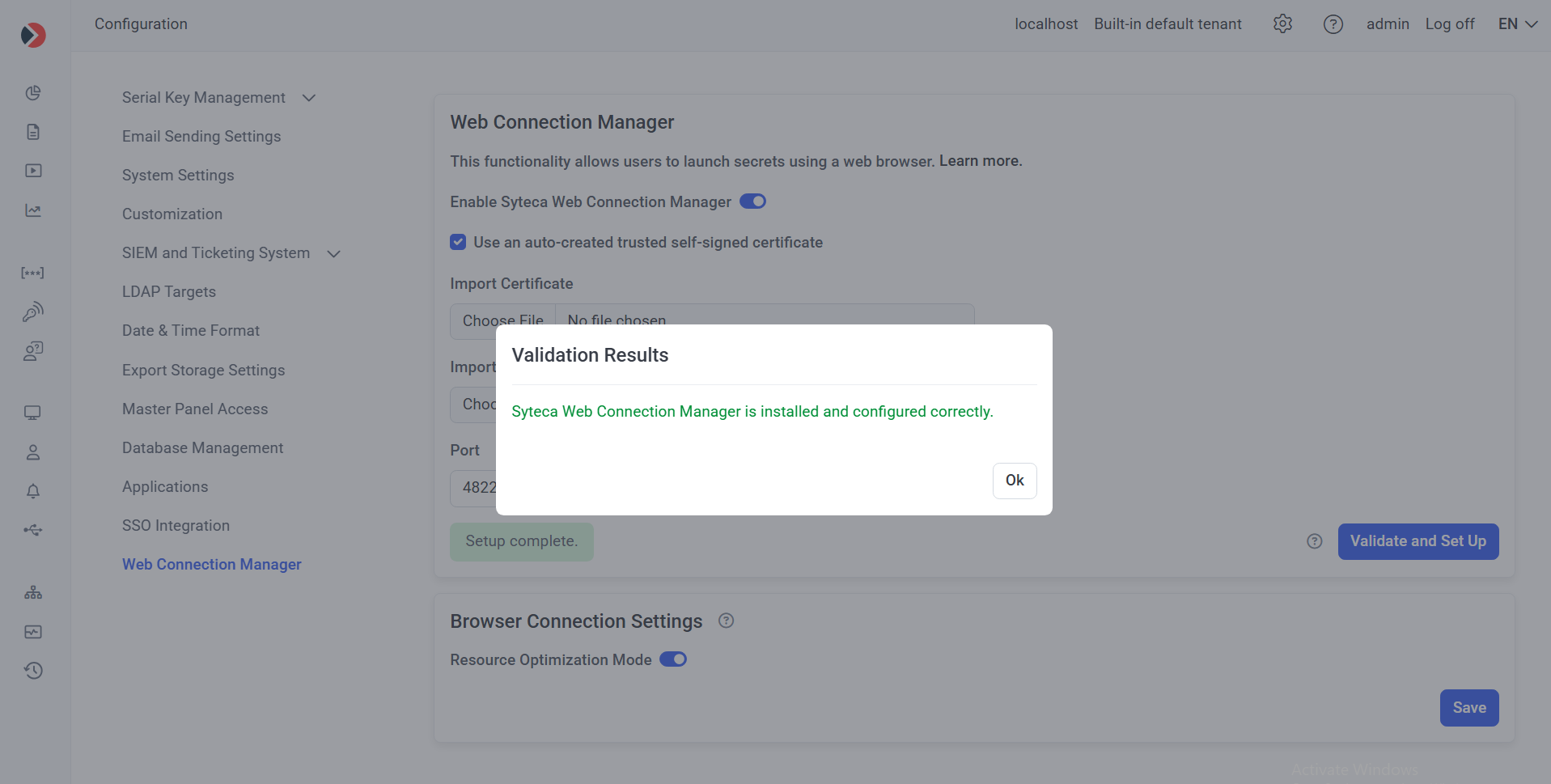 a) Move the Enable Syteca Web Connection Manager toggle to the right to enable this functionality.
