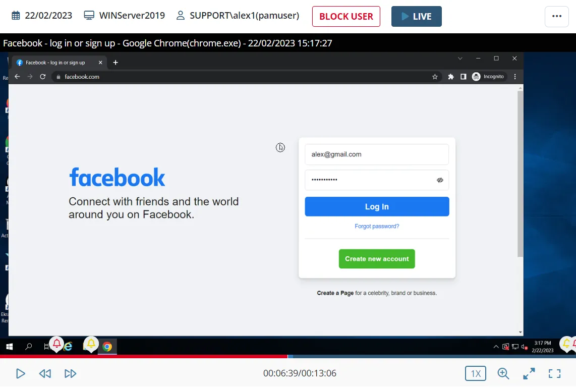 Any of these screen captures / video frames or graphical representations can be viewed individually by clicking on the required activity record in the Metadata grid (which is on the right of the Session Player), or all of the monitored data together can be viewed by playing the session.